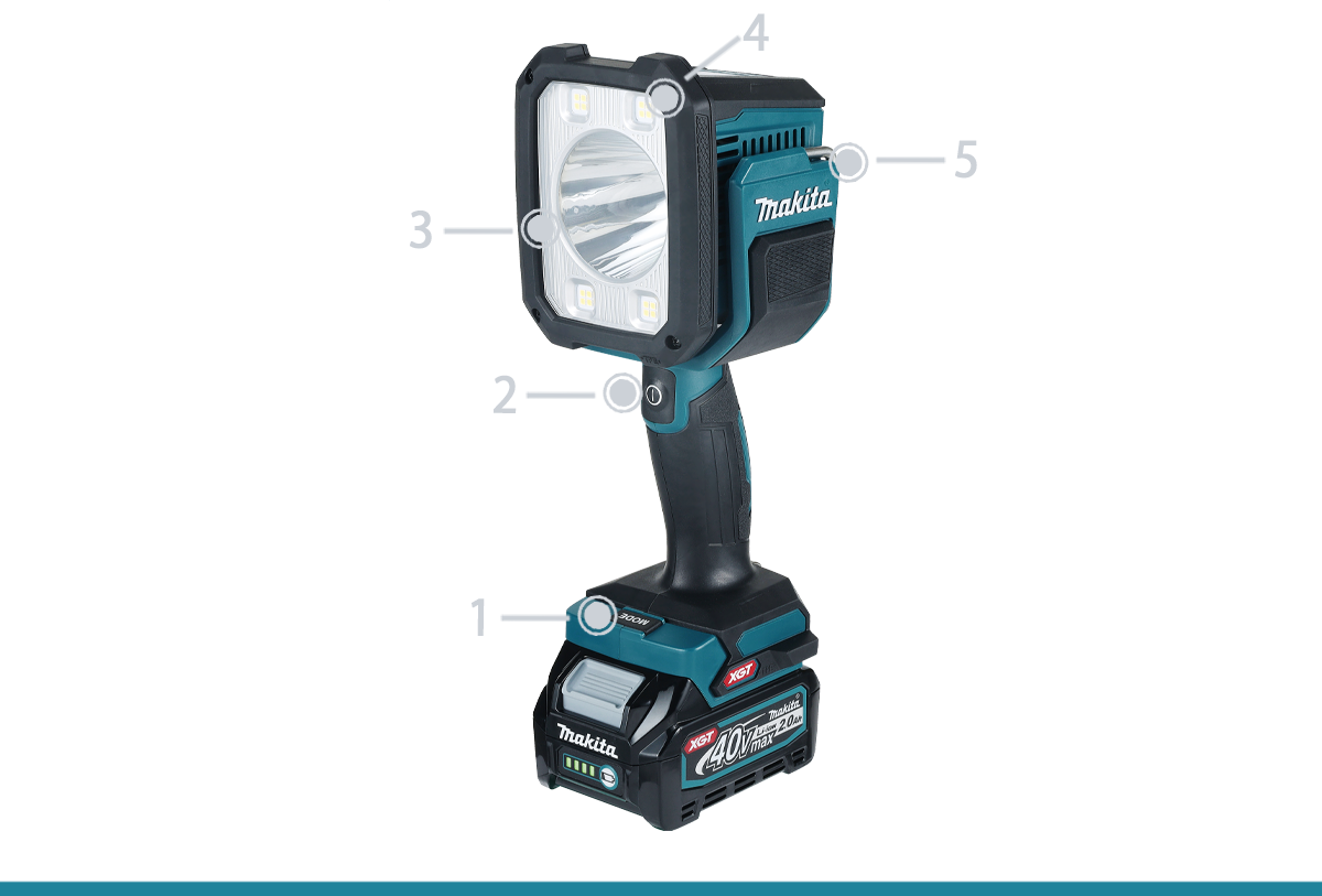 ML007G has 4 lighting modes available (Spot / Flood / Spot & Flood / Strobe). The Long beam distance goes as high as 640 meters in Spot mode. Approximately 14 hours of continuous illumination on a full BL4050F charge at a constant illuminance on Spot mode.
