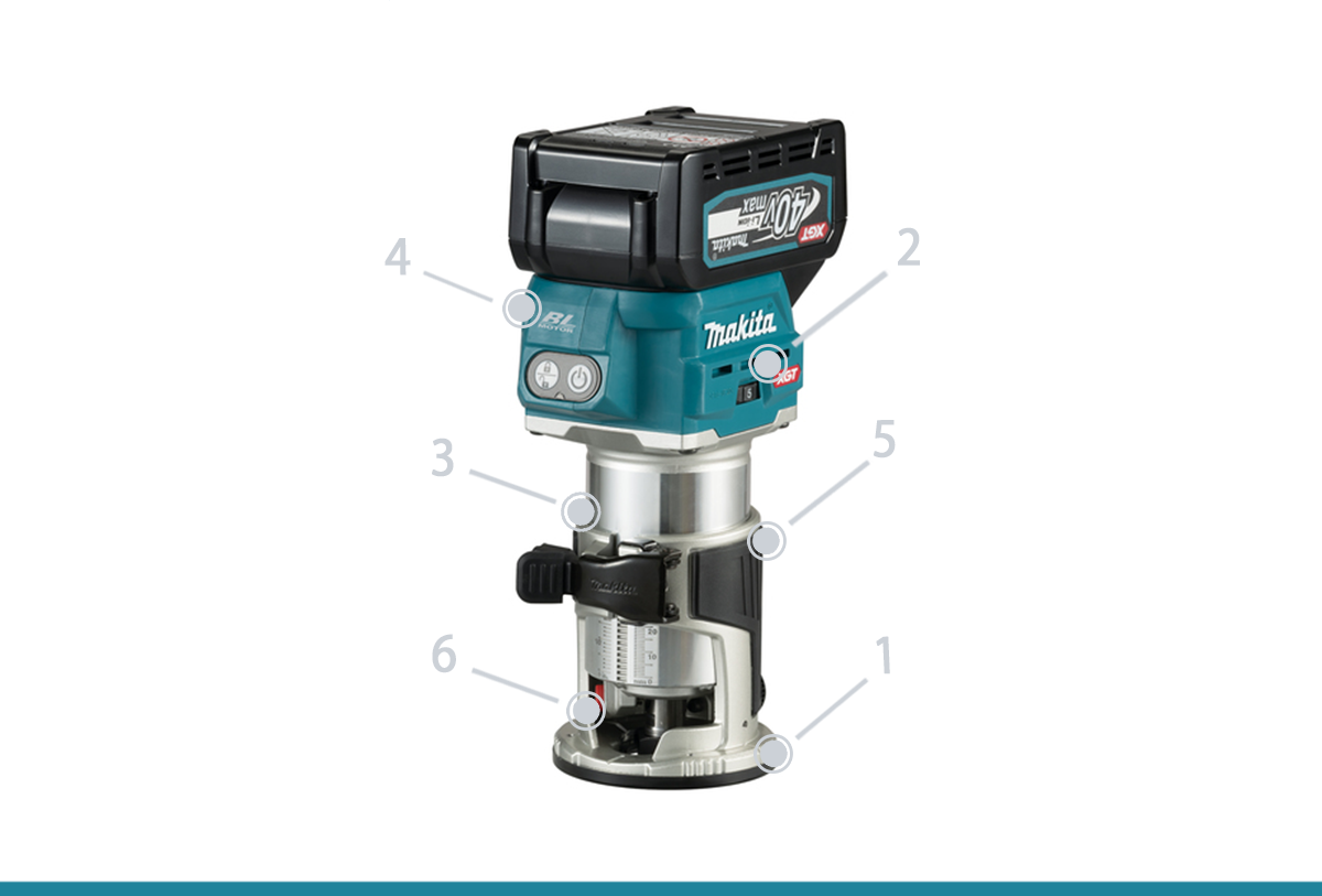 Makita´s new variable speed trimmer RT001G has a re-designed BL motor that delivers high power for working. Besides variety of features RT001G offers, the machine has a slim and ergonomically designed body for increased comfort and better grip. It is equipped with aluminum base for higher durability and accuracy. RT001G is also compatible with the bases used for DRT50.
